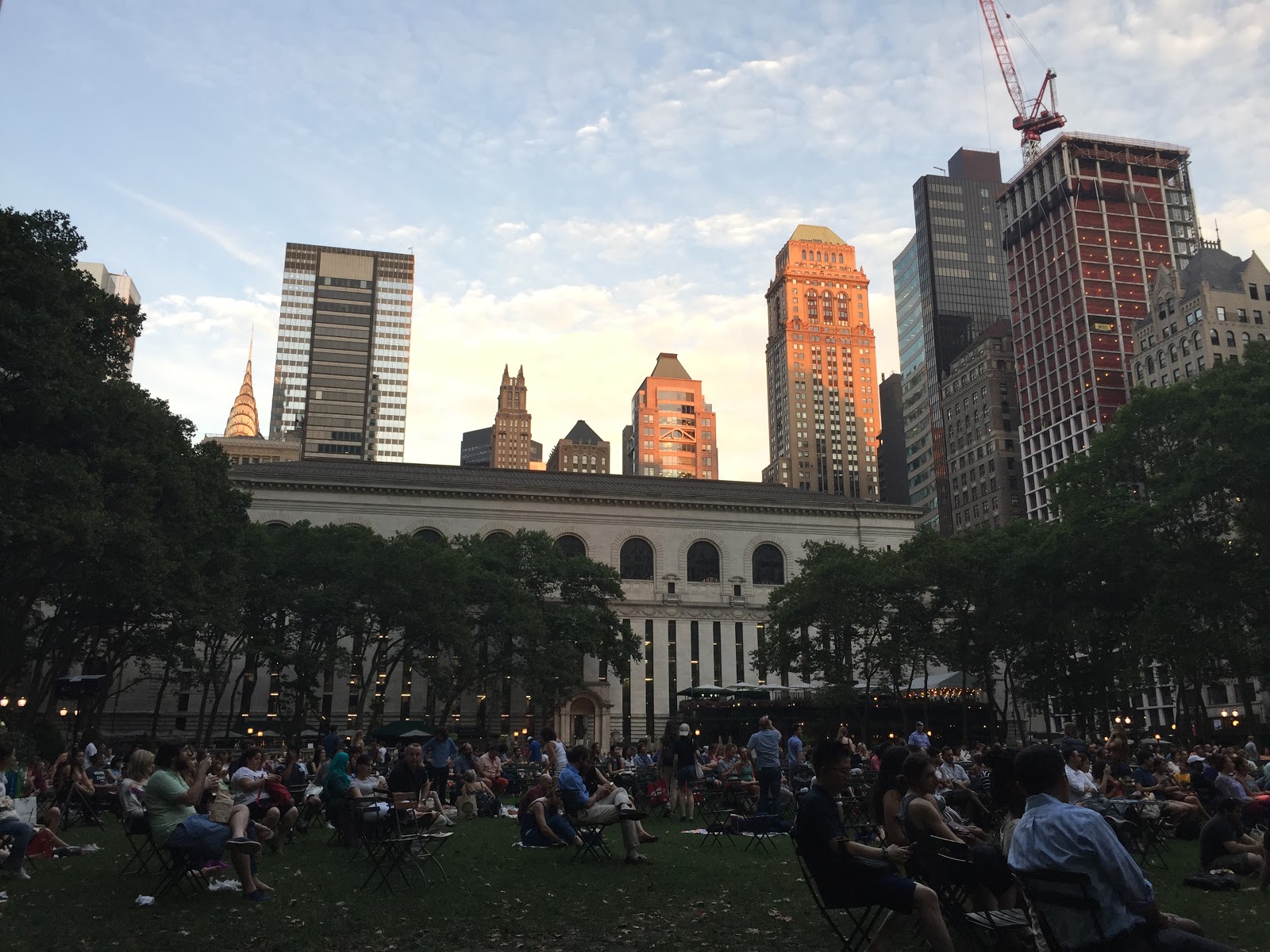 We went to Bryant Park that night and I loved this place! We came back to this park every night of our trip, and one night there was a classical concert and it was amazing to just sit and listen too while being in the midst of the city.